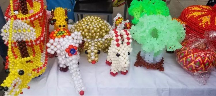 除了民俗结婚用品,让我们再来欣赏古交市妇联推送的《古装人偶作品》。作品以戏曲文化为背景,人物造型精美,栩栩如生,穆桂英、杨宗保、婚娃等的形象通过手工编织技艺传达的更为鲜明,深受人们喜爱。该系列作品采用蚕丝蛋白线为主材料,主要以钩针编织而成,技艺娴熟,做工精致,寄托着人们的美好愿望和对美好爱情的向往。