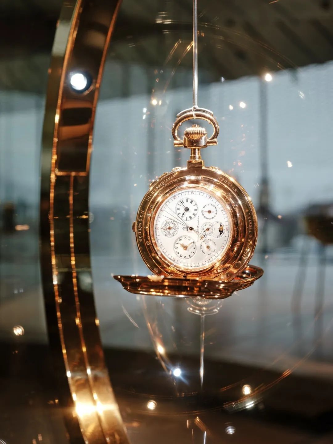 展馆最中心,陈列着爱彼天文显示、报时功能和计时三类时计的杰出作品。它们被放在球形展柜里,围绕着一枚Universelle 怀表。