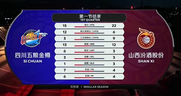 中圈跳球比赛开打,四川拿到球权第一攻不中,而山西这边给到外线张涵钧三分开火,李原宇两分还上,而原帅底角三分还有,随后两队陷入短暂僵持之中,上一场发挥出色的袁堂文抢断快攻给到陈辰拉杆上篮打破僵局,任骏威空切还有,随后刘冠岑抢断快攻完成2+1,张涵钧两罚全中为山西继续扩大领先,眼看分差拉大,四川这边袁振梁24秒压哨命中,比赛进入暂停(6-13),比赛回来山西继续占据场上优势,两队运动战得分效率不高,山西靠着罚球取得两位数优势,而景菡一上篮打进,李原宇上篮也有缩小差距,时间来到本节末段吗,陈辰三分再中继续追分,邢志强三分还上,随着张松涛压哨不中,首节结束,山西22-15领先四川。