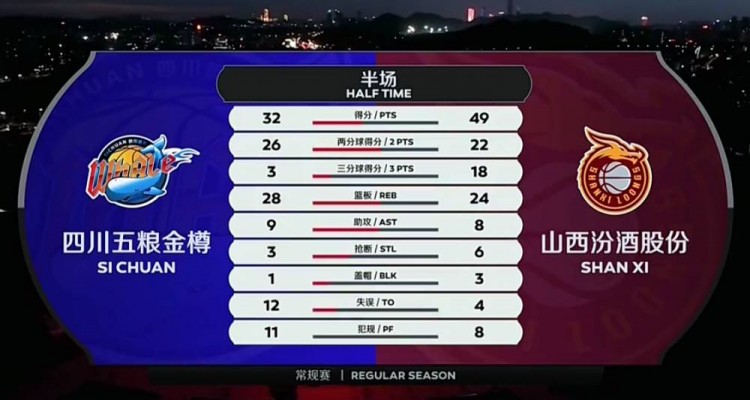 次节再战,张涵钧延续首节发挥,全场快攻制造犯规两罚到手,刘冠岑上篮也中,随着闫鹏飞球进哨响,比赛进入暂停(15-28),比赛回来加罚不中,侯天一吃饼止血,而山西外线连中两记三分,四川则是自己乱了阵脚,连续出现失误,只得再度喊出暂停(17-34),比赛回来对攻之中山西保持大比分领先,陈辰这边反蓝上进打成2+1,左朕年中投也有,而任骏威外线三分还上,拉锯战中山西保持十五分上下领先,随着田桂森一次反击得手,四川再度喊停(30-45),比赛回来两队各有所得,任骏威中投得手,随着李原宇最后一攻被盖掉,半场结束,山西49-32领先四川。