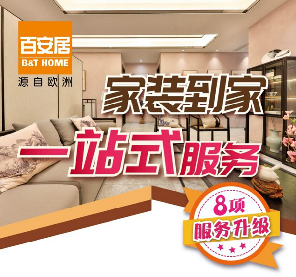 百安居“家装到家一站式服务”旨在将家装各环节的服务均实现在家无差异化。从家装前期咨询、检测、基建排雷,到议案、选材,再到签约、付款、结算各环节均实现到家服务,顾客在家即可轻松焕新家。顾客只需通过百安居APP下单,便可随时随地等待设计师免费到家专业解答。装修前期,百安居环境检测师上门检测,通过量房仪器精准测量房屋原始结构,检测环保指标,好设计用数据说话!检测完成后,由百安居专业工程师上门完成基础排雷工作,进行房屋基础结构排查,拒绝隐患、拒绝增项。装修期间,设计师上门服务,面对面沟通,深入了解顾客需求,沟通装修方案。设计师运用百安居自主研发的BIM技术,真实展现装修效果。此外百安居还实现在家选材,线下所有产品和规格线上展示,设计师上门分析材料,现场激发灵感,保证设计效果,让顾客足不出户选好材。连签约、付款、结算这些琐碎之事也均可在家完成。APP在线签约,合同即时生效,电子合同便于收藏。APP还可查核施工清单,实现线上一键付款,避免来回奔波,省时省力又省心。甚至连到家结算也由百安居工程师到家决算,项目花费现场核对,决算保修一步到位。