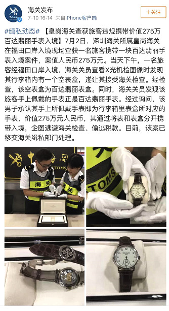 最近,一则《男子走私275万百达翡丽手表,补交165万税款》的新闻引起了腕表爱好者的热议:一男子在国外购买一块百达翡丽手表后,没有按照相应规定在入关时申报,将面临补交165万元的行邮税以及相应的行政处罚或刑事责任。