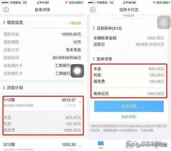 金小鲸(ID:lanjinghj)查询发现,信用卡代偿业务的还到平台实际疑在做现金贷业务,且利率畸高,远超36%的监管红线CN聚投诉的一条投诉信息显示,用户误入还到平台,在没有提示输入密码或验证码的情况下,直接提示放款中,且无法退订,联系客服称无法取消。投诉信息中披露的账单详情显示,该用户借款本金为1万元,分12期还款,除第一期还款2013.37元外,此后11期还款金额均为1053.33。