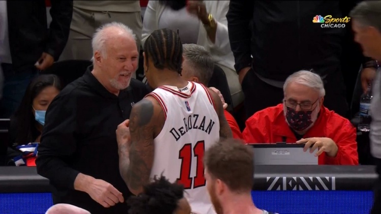赛后德罗赞、多诺万与波波维奇三人相互拥抱,并且进行了一番寒暄,气氛非常轻松。