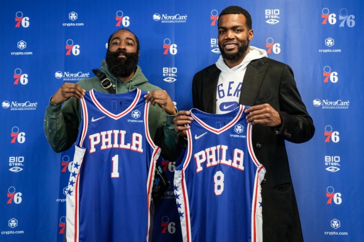 哈登将在76人身穿1号球衣,米尔萨普穿8号。据此前报道,哈登将因左腿筋伤势恢复缺席至全明星周末结束,且不会参加全明星赛。
