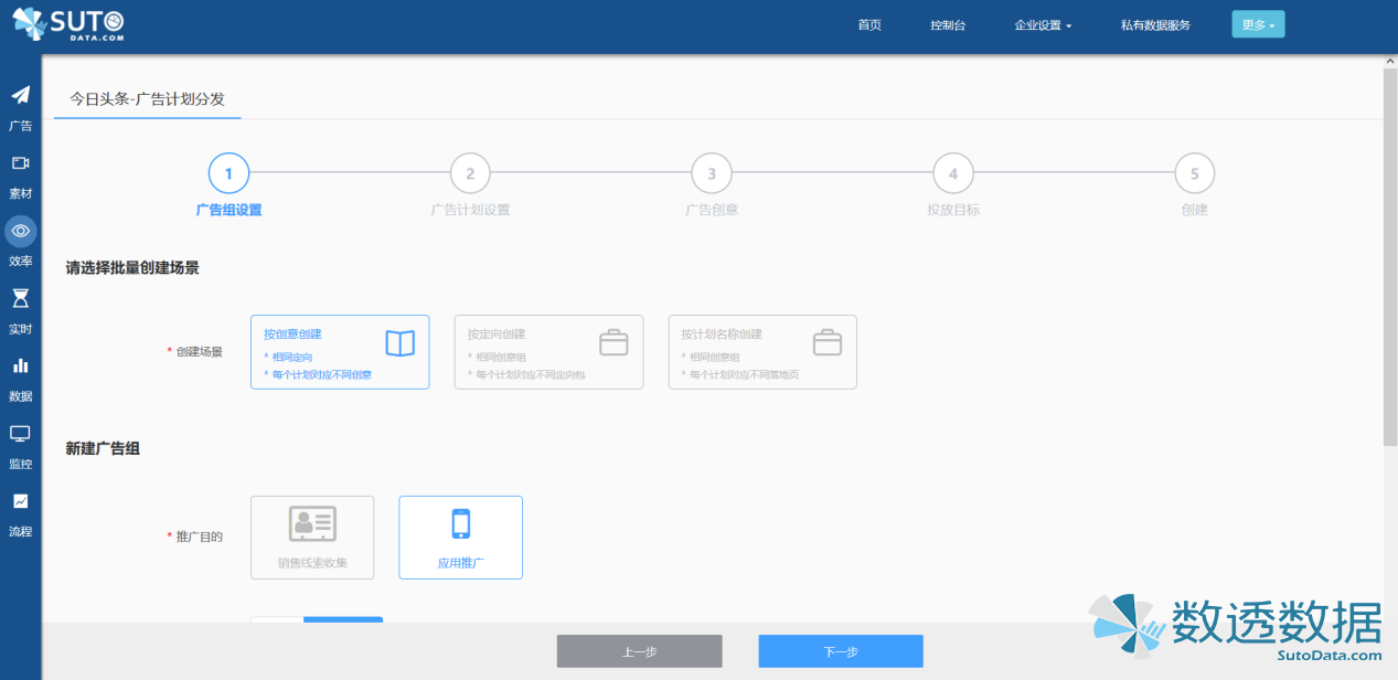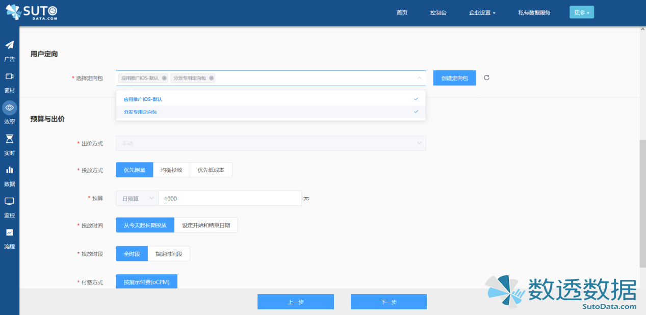 使用数透数据广告计划分发,只需选择投放账号,上传一次创意,选择2个定向包,然后只需点一下同步按钮,即可在3个平台的账户中查看到对应的投放项目及上传的素材。测试后发现,同样300个创意,使用数透数据效率工具,最多花费15分钟即可完成操作