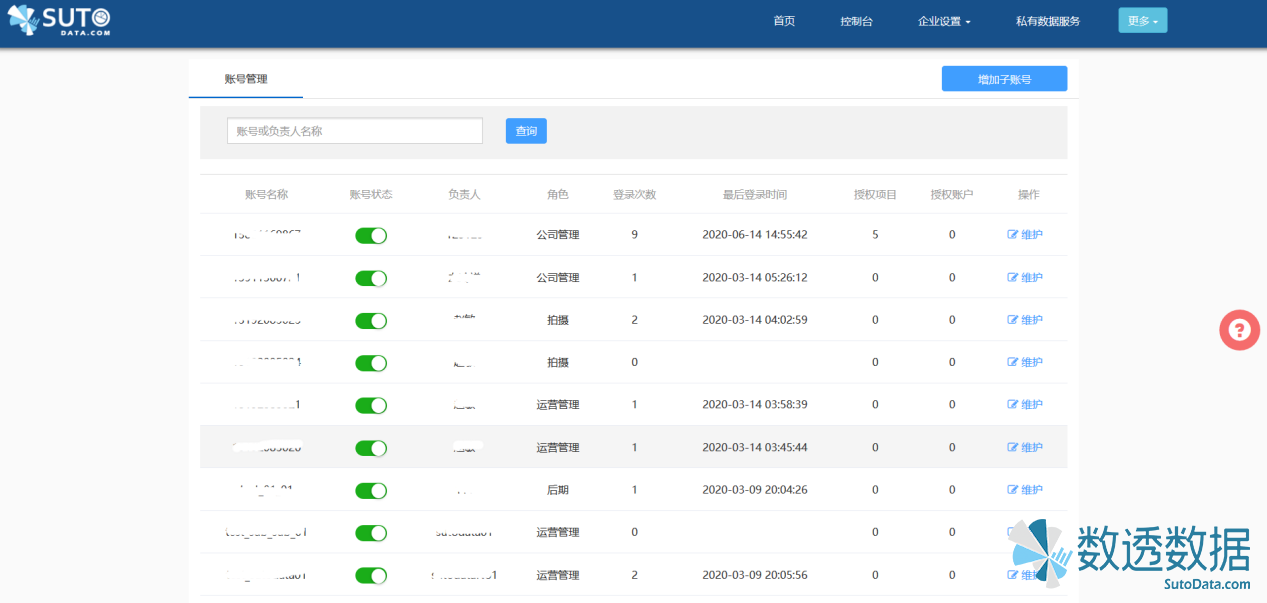 不同于其他行业,在广告投放行业中涉及的业务和人员是比较复杂,这就要求广告管理系统有一套灵活的权限管理体系。数透数据的权限管理,可以根据应用需求进行灵活设置,支持从脚本制作人员,拍摄人员,后期人员,优化师,创意主管,运营管理,公司管理等多个级别的账户权限管理。