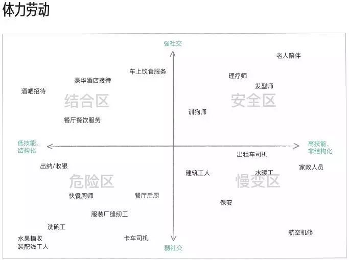 首先我们要知道结构化就意味着这份工作的内容已经被模式化了。就好比洗碗工来说,洗碗就是一个十分模式化的工作,只要跟着步骤做可以把碗洗好。如今洗碗机的洗碗效率就已经比人工洗碗要高,如果洗碗机再加入人工智能技术的话,则可以从餐具残留的油渍、残渣等多方面进行分析得到最优洗碗方案,这一点人工洗碗是难以快速完成的。在效率和质量都无法与人工智能匹敌的情况下,随着这项技术的成本降低,结构化低技能的职业势必要被淘汰。