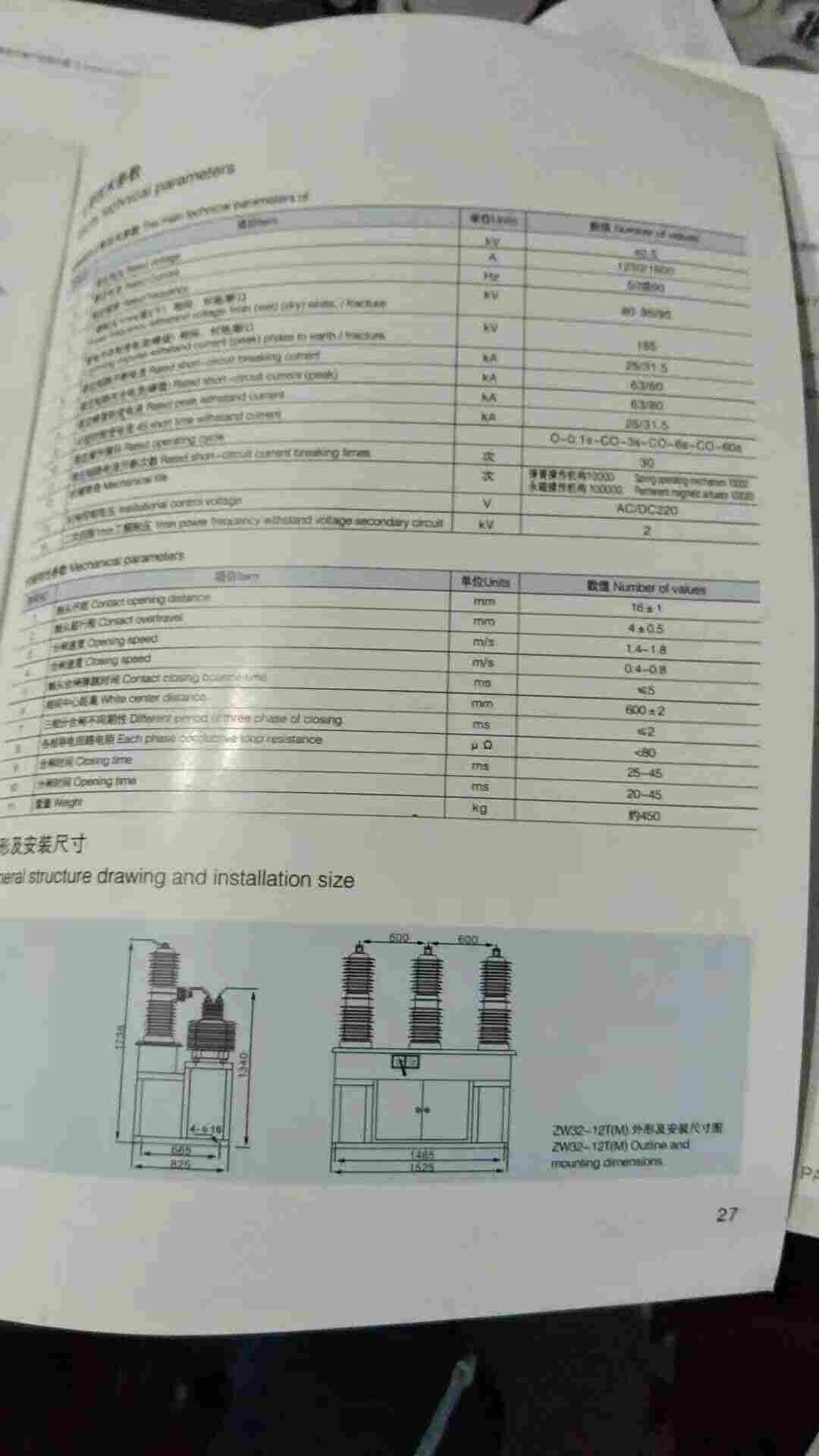 近年来志威户外真空断路器了可喜的发展,除了ZW6-12、ZW7-12、ZW8-12等型外,志威公司新品不断推出如zw32-12型、ZW32-40.5型、AB-3S-40.5型等图片随机请以实物为准。采用线次不用检修,机械寿命高达100000次,已处于同类产品的水平。