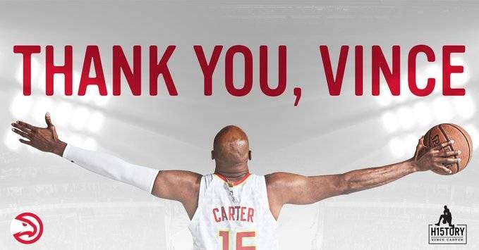 6月25日讯 今天,老将文斯-卡特在一档节目中正式宣布退役,结束自己长达22年的NBA球员生涯。随后,老鹰官方转推确认了这一消息,并对卡特表示感谢。