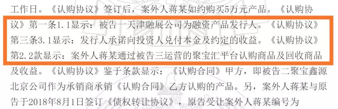 中国裁判文书网信息显示,就在聚宝匯逾期事件被曝光后的2018年8月,天津市河西区人民法院审理了一起聚宝匯相关的合同纠纷案,天津融展为被告方之一。