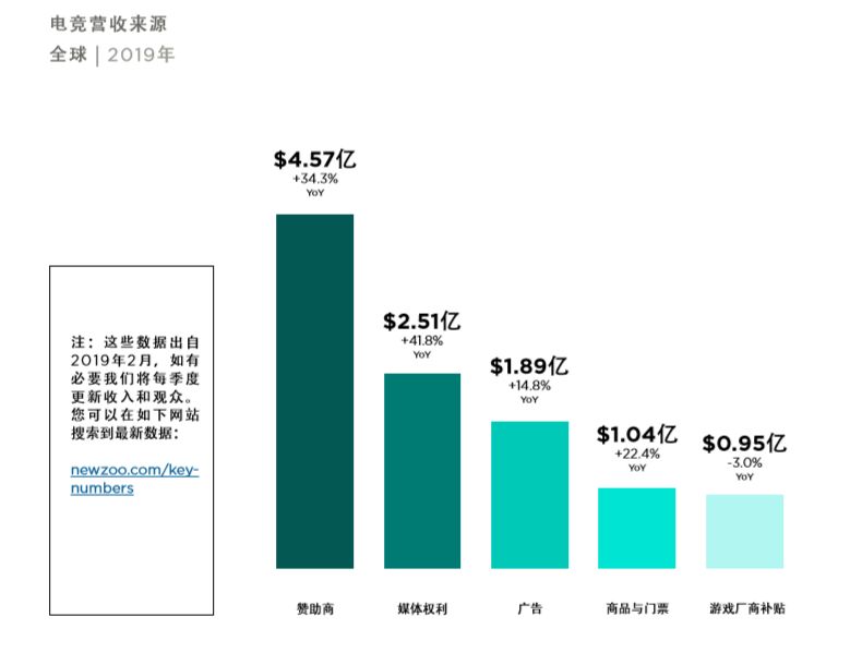 前面我们说到在Newzoo的计算中,剔除了“游戏收入”,所以电竞产业的营收主要由商品与门票、游戏厂商补贴以及品牌投资收益(媒体版权、广告、赞助)这几大块构成。与游戏产业动辄百亿的营收相比,差距明显,但这也真实反映了电竞产业的发展现状。