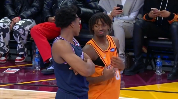 2月19日讯 NBA全明星趣味投篮比赛,猛龙4号秀斯科蒂-巴恩斯(搭档76人二年级生马克西)现场整活。