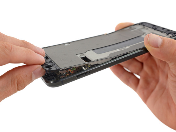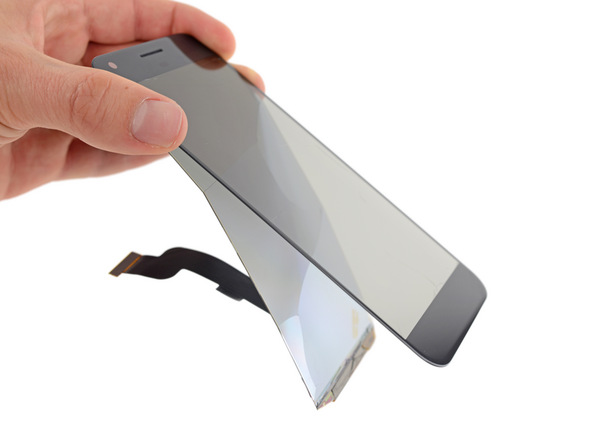 在拆解过程中,iFixit发现Pixel XL手机的OLED显示屏面板的分离比想象中的要容易,不过由于屏幕面板与玻璃之间只有薄薄的组件连接,加上没有边框等固定元素,在分离的的时候不可避免的会造成损伤,因此在拆解屏幕的时候需要十分小心。另外屏幕下方覆盖了一层隔离中框,与手机内部的其它零件分离。