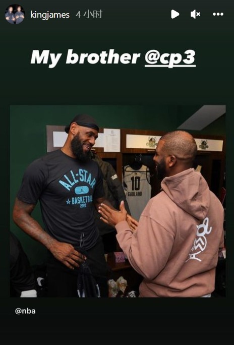 2月20日讯 2022克利夫兰全明星周末正在进行中,湖人球星詹姆斯今日在其个人社媒晒出了与太阳球星保罗的合照。
