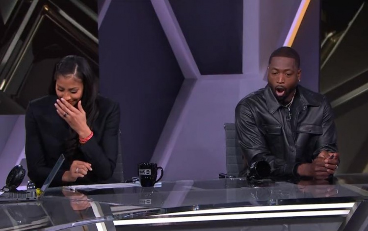 1月26日讯 今天,在湖人对阵篮网的赛前演播室中,嘉宾韦德不小心将桌上的水杯碰翻。