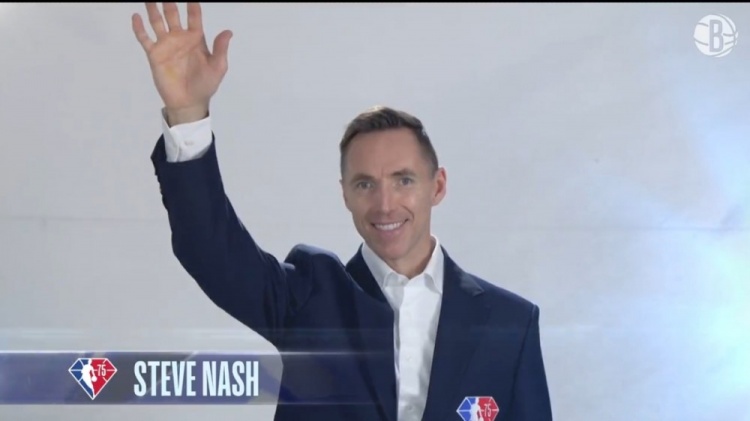 前太阳球星、现篮网主帅纳什也出席了中场庆典仪式。篮网官方转发纳什出场视频并写道:“@纳什XNBA75大巨星。恭喜纳什教练!”