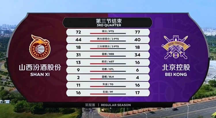 半场调整归来的山西抢得不错开局,张涵钧的罚球和刘冠岑的上篮将分差追至6分。北控在这之后依靠着孙桐林的空位上篮才打破僵局,弗格也在随后依靠罚球拿分,北控虽然进攻端有所复苏,但进攻端难以阻止对手,山西这边张涵钧再一次反击打成2+1,随后原帅的进球近一步蚕食分差。北控几次进攻全都无功而返,失误频频外加被造进攻犯规铩羽而归。张帆的底角三分为北控止血,但回头原帅两个回合两记三分进球,山西从半场落后11分到抹平分差。北控最后的暂停取得效果,宗赞的上篮和陈金龙的关键2+1重新取得领先,三节结束时北控手握5分领先。
