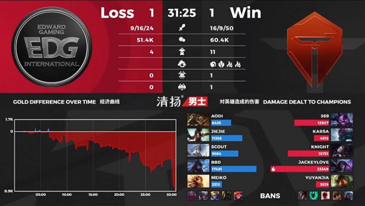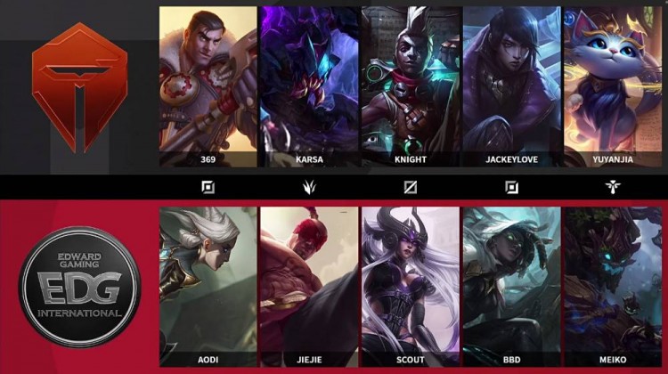【9:10】TES开启峡谷先锋,EDG发现后五人来团,TES先行拿下峡谷先锋随后辛德拉大招带走盲僧,不过EDG打出配合奥恩E击飞TES中野,沙皇和厄斐琉斯大招放出秒掉两人,EDG拿到优势持续追击,天使也被击杀,EDG完成1换3。