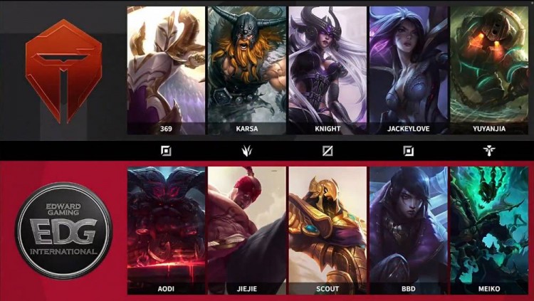 红色方EDG:厄斐琉斯、盲僧、锤石、奥恩、沙皇
