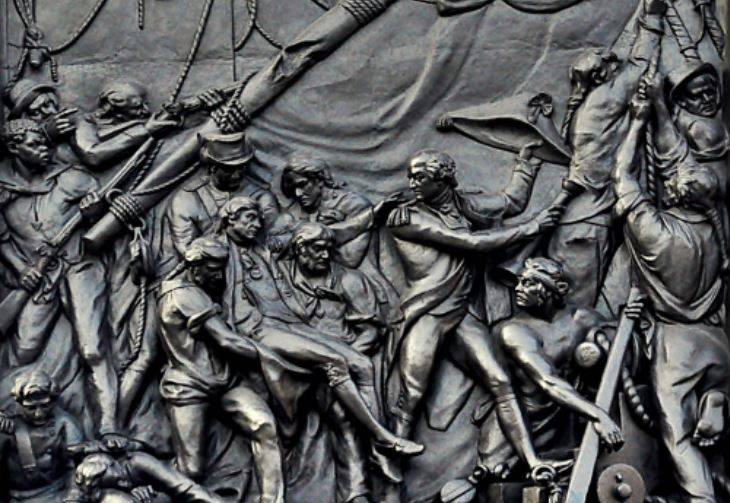 雕塑创造了一个鬼域,在岩石的表面与肌理同时住着两个幽灵,那个被铭刻的人物失去了血肉之躯,以一种超越历史的姿态在人们面前呈现着绝对的过去;而那些被忽视的人与事也并没有烟消云散,他们留存在轮廓、缝隙还有一些不为寻常人所见的角落——比如纳尔逊雕像基座上蚀刻的黑人士兵。