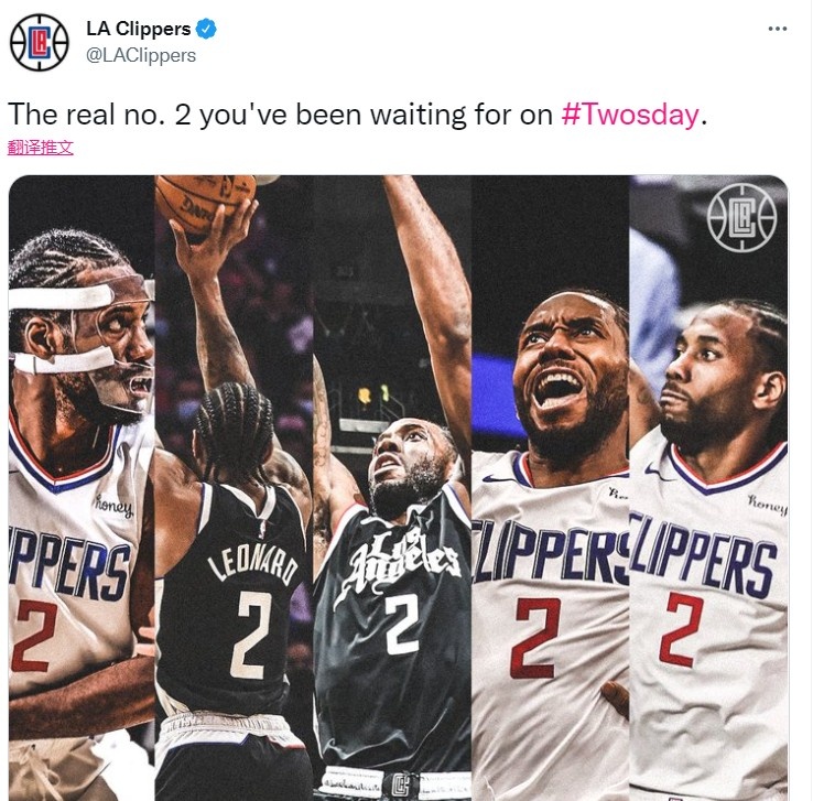快船官推晒出一张莱昂纳德的P图,并写道:“这是你们真正在等待的2号。”