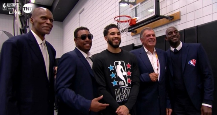 谈到本场比赛赛前和凯尔特人名宿帕里什、皮尔斯、麦克海尔以及加内特合影时,塔图姆表示:“这很难以置信,我甚至有点觉得我不配出现在照片中,鉴于他们所取得的成就以及他们对篮球比赛的影响,尤其是对凯尔特人而言。”