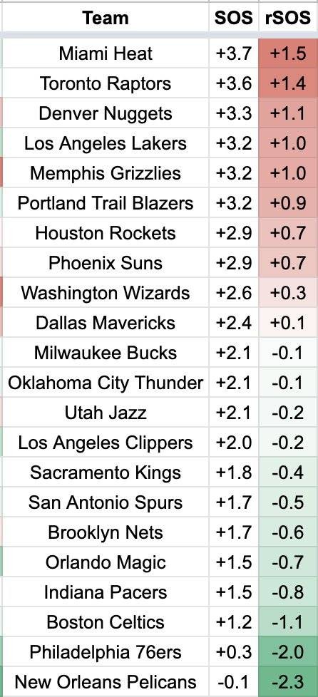 赛程出炉后,数据专家Jacob Goldstein统计了各队最后8场较量的赛程难度,猛龙和热火两队相当,都是最难的,鹈鹕的赛程最简单。