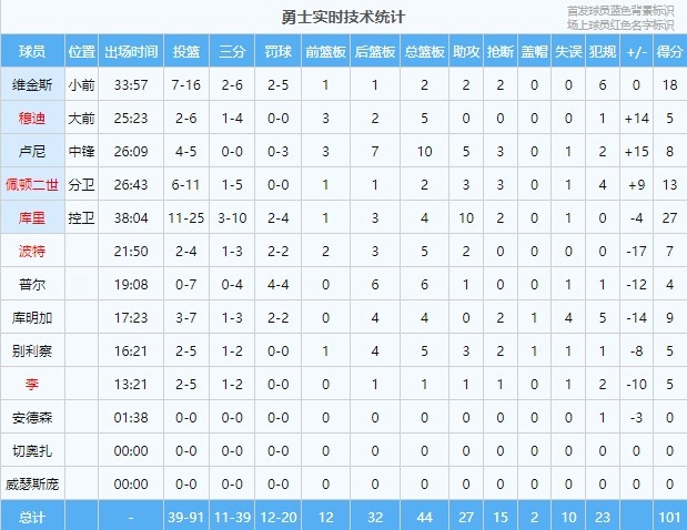 2月28日讯 NBA常规赛,勇士在主场以101-107不敌独行侠。