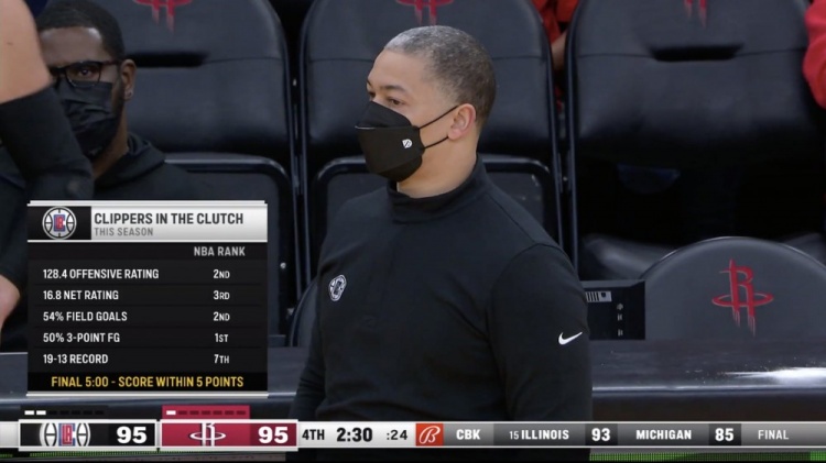 比赛进行到第四节时,转播方打出数据显示,本赛季快船关键时刻(比赛最后5分钟且双方分差在5分以内)多项全队数据排名联盟前列,具体如下: