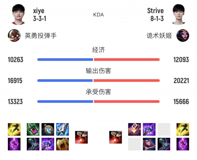 而在第二局的表现上,Strive使用发条对阵Xiye的瑞兹,两波团战都拉到了多人,最后拿下了两局比赛的MVP。