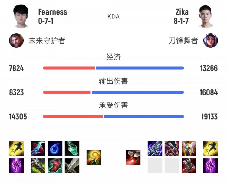 虽然iG在第二局和第三局的比赛上败给了LGD,但是iG.Zika在第一局的表现还是让人眼前一亮,对线多次完成单杀,最后打出了全场最高的伤害,取得了首局比赛的MVP。