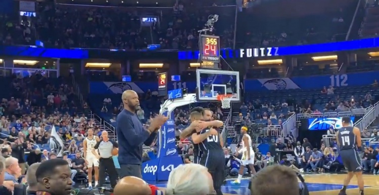 科尔-安东尼走过来和富尔茨拥抱,主场球迷则献上了热烈的掌声,主教练莫斯利带头鼓掌。