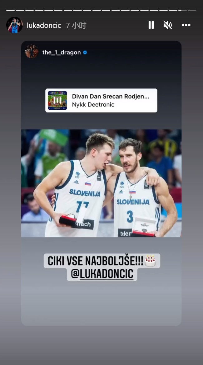 3月1日讯今天是独行侠球员东契奇的生日,斯洛文尼亚老乡、国家队队友德拉季奇更新Instagramstory为他送上祝福。