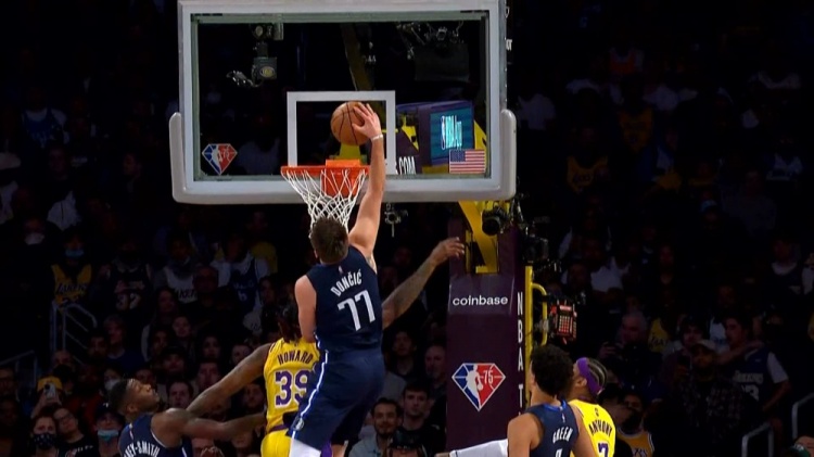 第一节,丁威迪底角三分弹筐而出,东契奇从三分线外直杀内线隔着霍华德完成罕见单臂补扣!!!