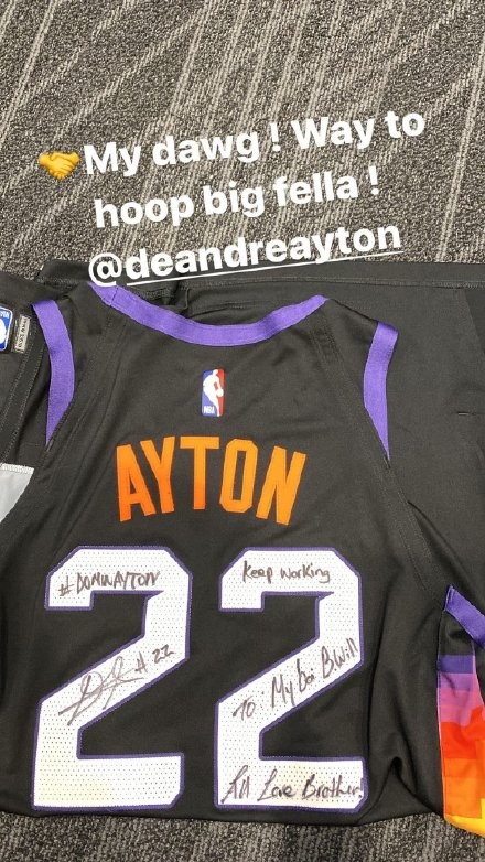 赛后开拓者球员布兰登-威廉姆斯在自己的Ins上晒出了照片,比赛结束之后太阳球星艾顿把自己的球衣签名送给了他。