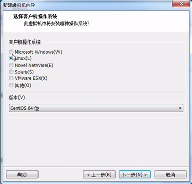 这个页面,这里可以模拟很多系统,选择Liunx,然后选择CentOS 64位版本,点击下一步,