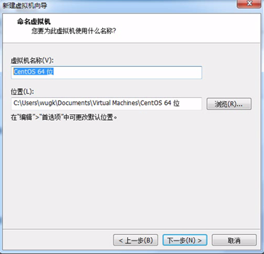 进入以下这个页面,命名,还有确定虚拟机的路径,通常选择一个磁盘比较大的,确定后,点击下一步,