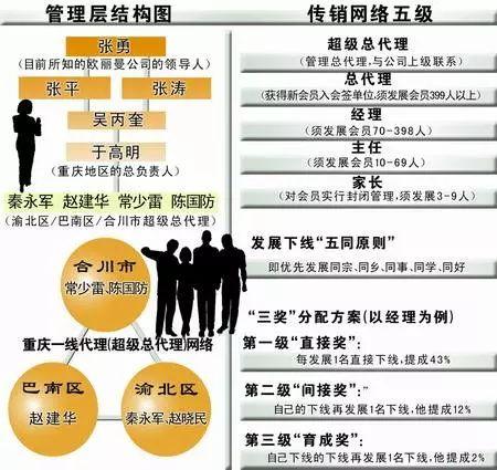 不同传销组织有不同的制度,其中较为普遍的是五级三阶制,也有四级的,从低到高依次是:经销商,主任,科长,经理四个级别,做到了经理就出局了。