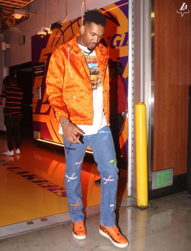 赛前湖人官推晒出了蒙克和甜瓜的入场照,并写道:Malik x Melo !