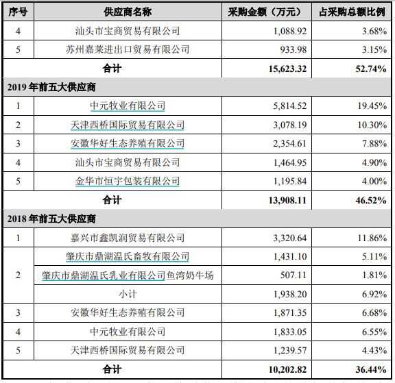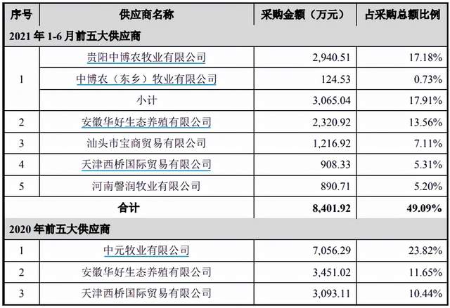 对此,阳光乳业在招股书中解释称,由于2021年以来中元牧业与另一家企业协商收购事宜,于是委托同一控制下贵阳中博继续向阳光乳业供应生鲜乳,因此贵阳中博也顺理成章地在2021年上半年成为阳光乳业的第一大供应商。