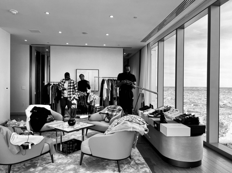 3月9日讯 76人球星哈登今日在其个人推特晒出一张他在公寓中与大量奢侈品衣物、鞋子的合照。