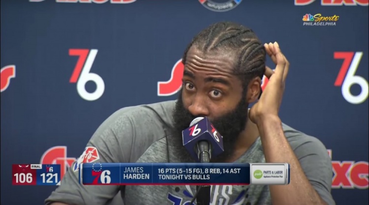 3月8日讯哈登复出帮助76人战胜公牛。哈登本场出场38分钟,投篮15中5,得到16分8篮板14助攻。
