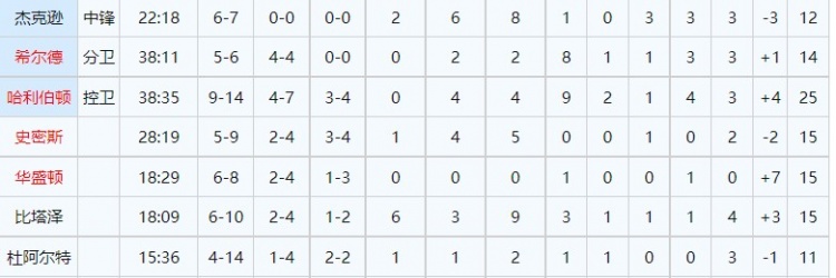步行者今日全员皆兵,共有8人得分上双,其中哈利伯顿14中9,得到全队最高的25分。全部出场球员中仅布里塞特得分未上双,但仍遗憾惜败骑士。