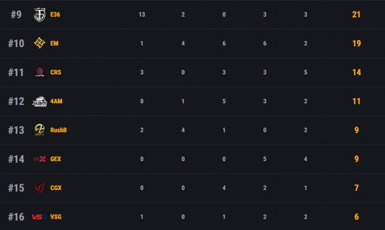 4AM与RushB今日表现依旧不佳,4AM仅拿下11分总分40分排名第12,RushB今日拿到9分总分31排名第十三。