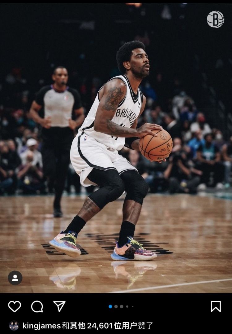 在社媒上,有媒体发布了一段欧文50分的视频集锦,值得一提的是,欧文的前队友詹姆斯也点赞了这条视频。