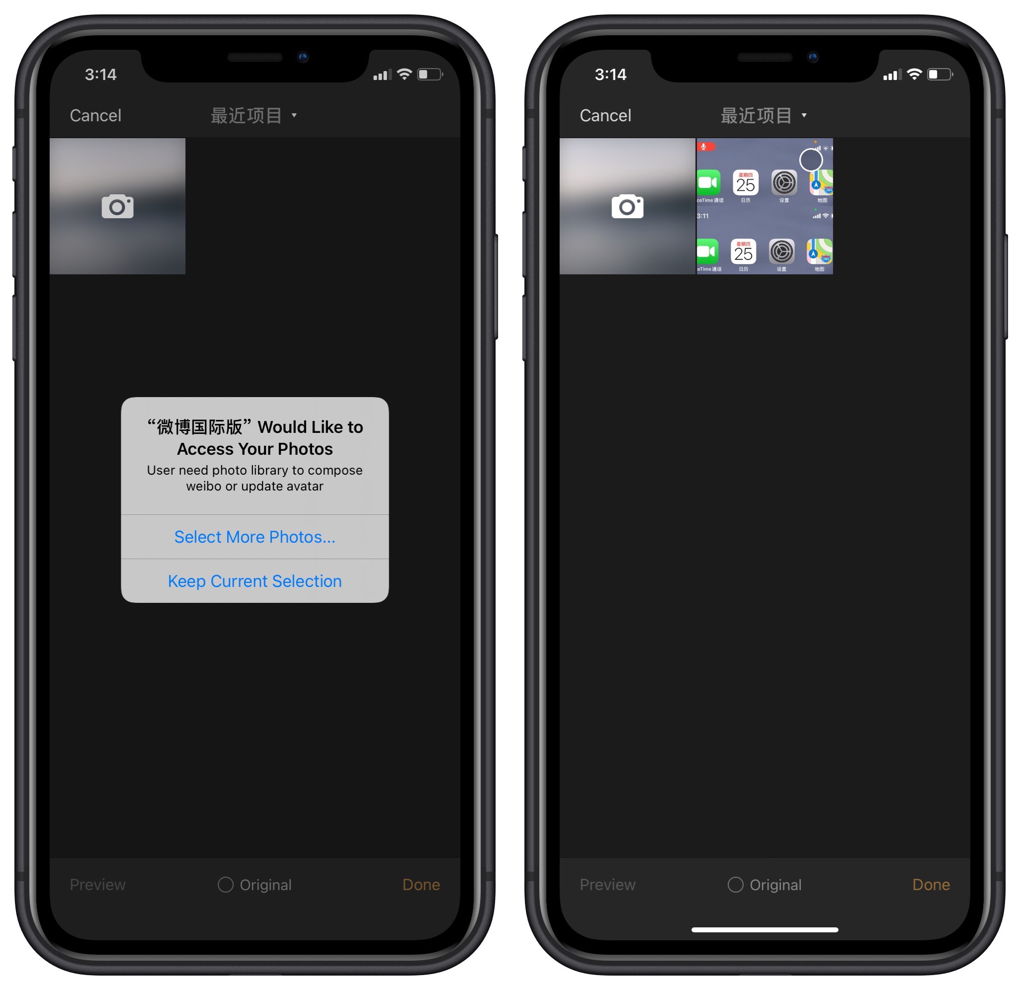 但目前该模式并不完善,很多App在上传完照片后,必须在后台进行重启,才能进行第二次照片勾选,否则你只能从之前的临时相册中选择图片。