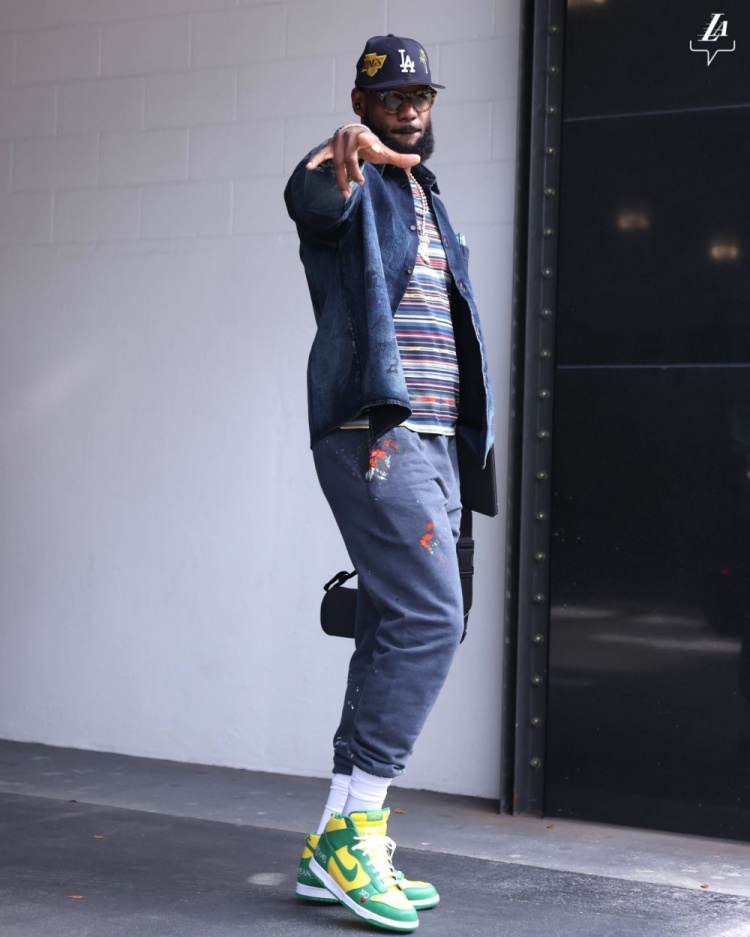 湖人官推赛前晒出詹姆斯今日的到场照,并配文:“他在这里看着你!”