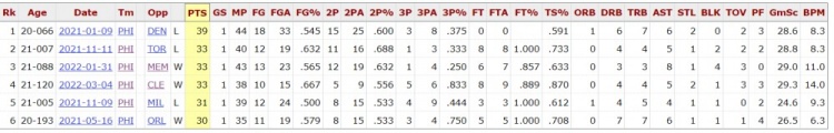 美媒StatMuse晒出一项有趣数据,76人二年级球员马克西目前已经有6场比赛拿下30+,而西蒙斯效力76人期间,一共也只有6场比赛拿下30+。