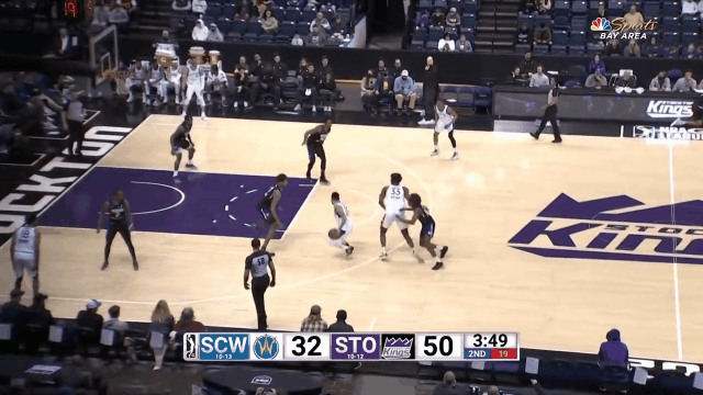 3月11日讯 今日,勇士中锋怀斯曼参加了发展联盟圣克鲁兹勇士与斯托克顿国王的比赛。
